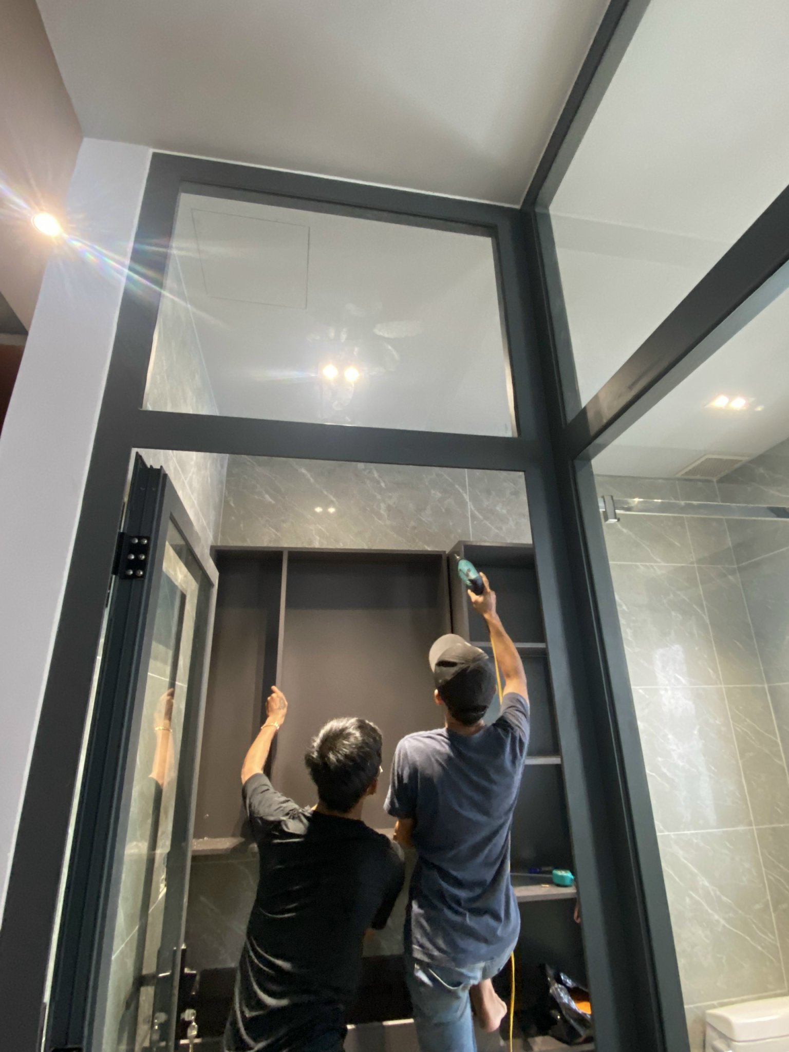 Khi các bộ phận nội thất đã được chốt xong, đội ngũ thi công sẽ bắt đầu lắp đặt. Các bức tường, sàn, trần, cửa, cửa sổ, sẽ được lắp đặt cùng với việc đặt các bộ phận nội thất vào vị trí cuối cùng.